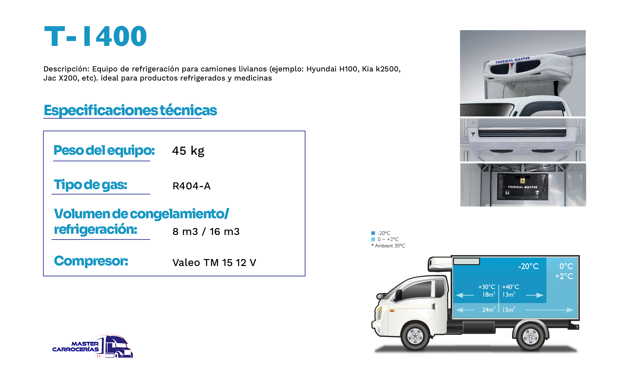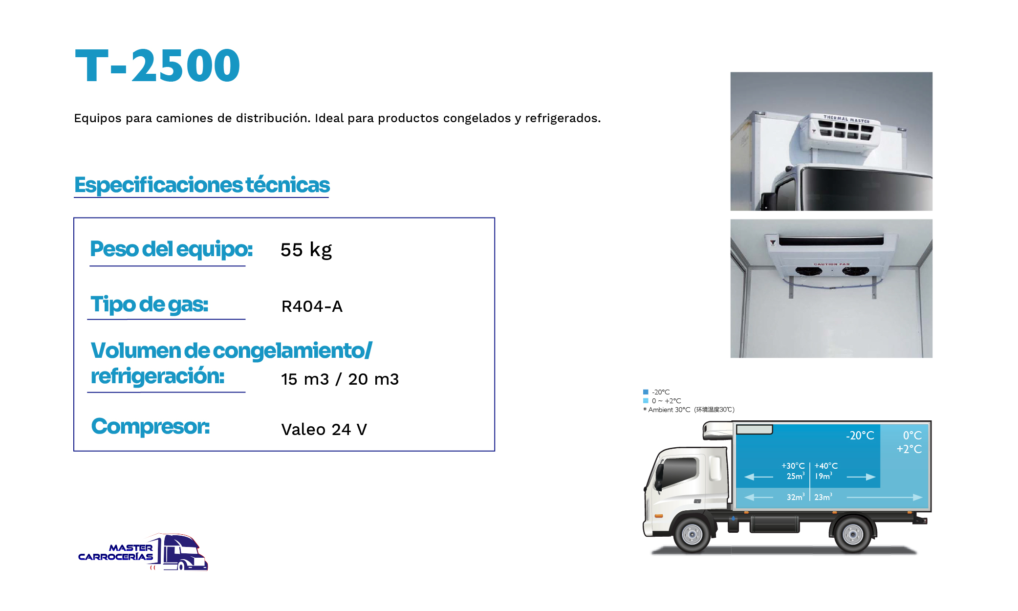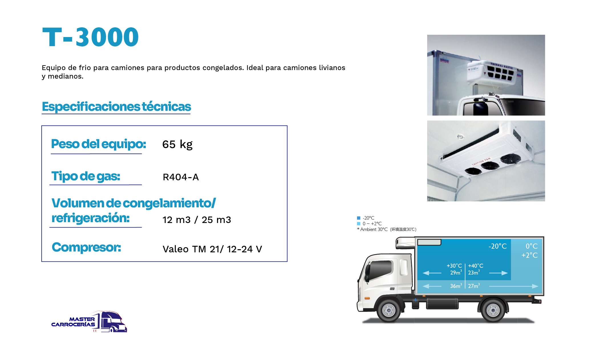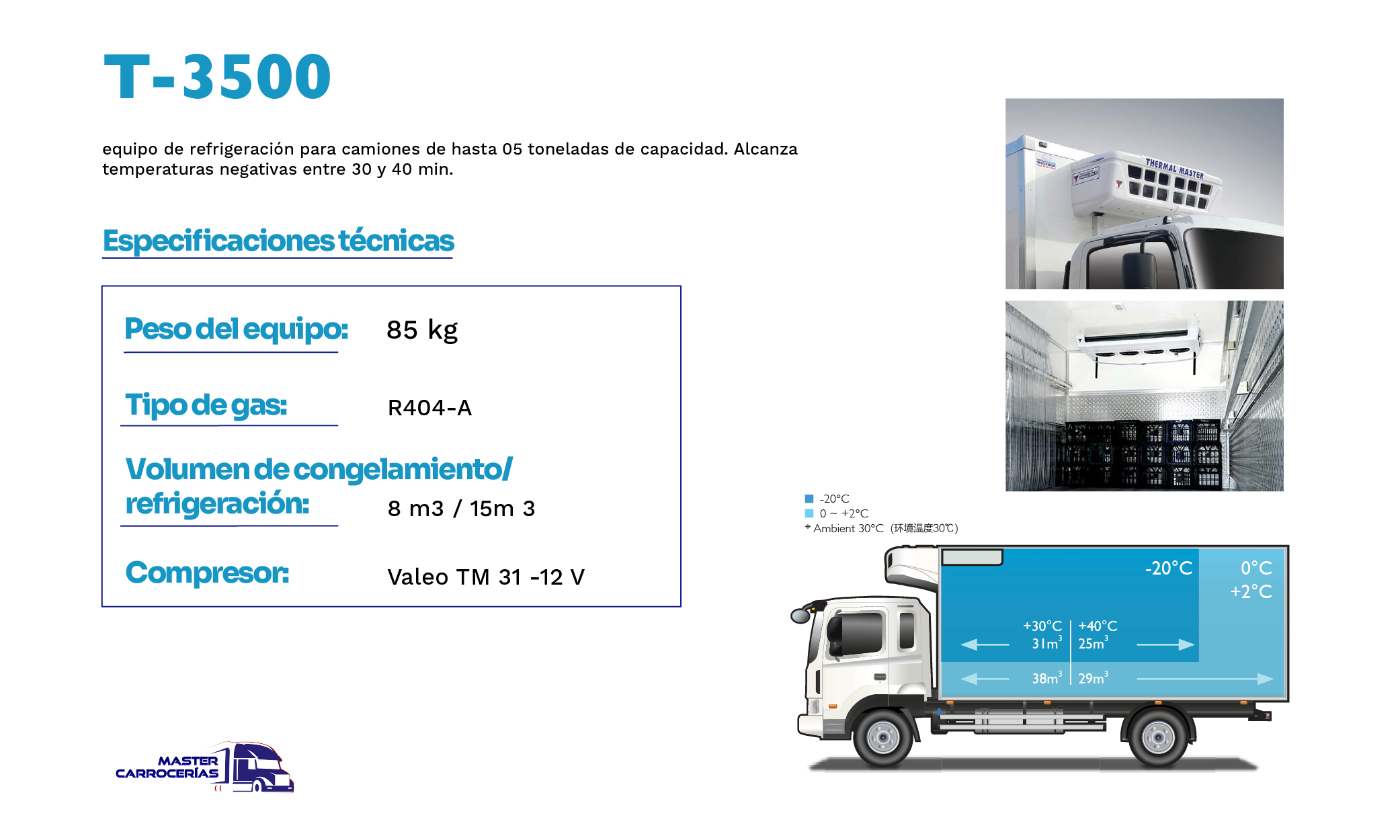 En Master Carrocerías ofrecemos equipos de frío para camiones en Perú, con instalación profesional y garantía. También diseñamos carrocerías personalizadas para transporte urbano e interprovincial. Trabajamos con Thermal Master, marca coreana líder en refrigeración vehicular.