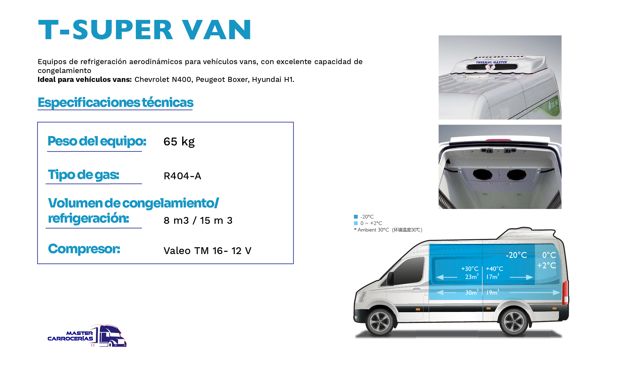 Suministramos e instalamos equipos de refrigeración para camiones de procedencia coreana, marca Thermal Master, aptos para todo tipo de camión y van.